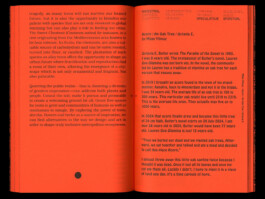 A Tree, is about vegetal agency, plant knowledge, and the interaction between plants and people, with a specific focus on trees. Like all plants, trees make the world; they literally create soil, shape landscapes, and affect the climate. They produce oxygen. They provide fuel, food, building materials, and shelter, and form ecologies where a myriad of species come together to enter into various symbiotic partnerships. Trees are wonderful to think with, and humans have been doing so—through meditation, in all kinds of storytelling, and as partners in problem-solving—probably for as long as they have walked the earth. Trees are also time tellers, rather than following industrial time, clock time, or any time defined by human activity, trees relate to their own experience of time.