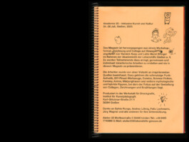 Publication based on the workshop I gave together with → Lotte Meret Effinger at Justus Liebig University in Gießen. The workshop was part of the → Akademie23, an interdisciplinary and inclusive summer academy organized by Lebenshilfe Gießen e.V. and Atelier23, aiming to give space to the joint artistic research of people with and without disabilities.